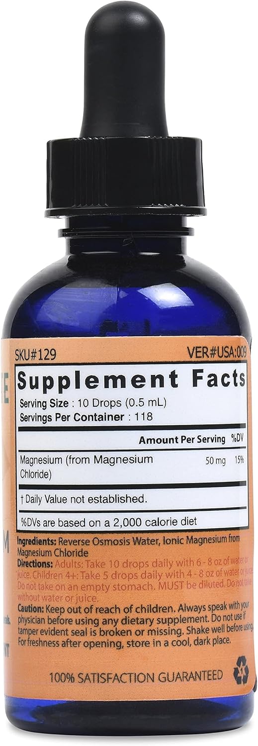 Ultra Concentrated Liquid Ionic Magnesium Supplement - 100 Servings, 10 Drops for 50mg - High Absorption Formula