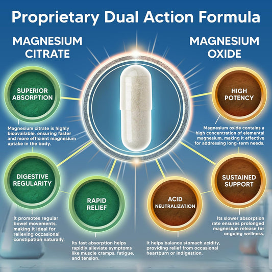 180 High Absorption Magnesium Citrate & Oxide Capsules - 500mg, USA Formulated & Third-Party Tested - 180 Day Supply