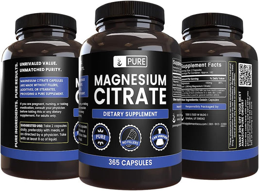 365 Capsules of Pure Magnesium Citrate with Original Ingredients - No Fillers, Lab Verified