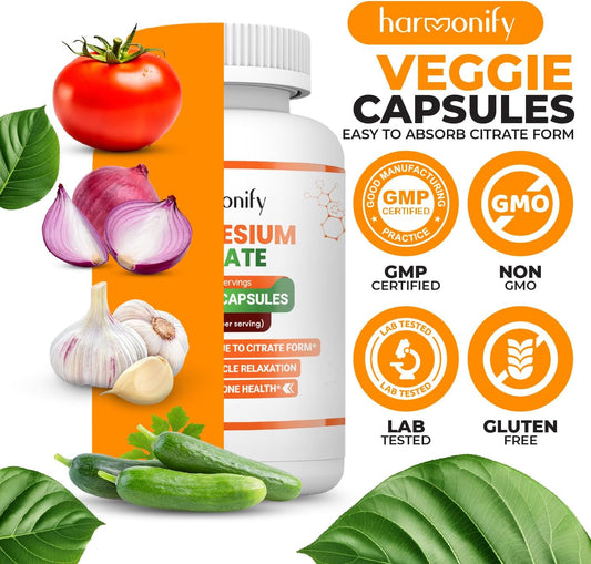 800 mg Magnesium Citrate Supplement for Muscle & Sleep Support - Enhanced Absorption, Gluten Free & Vegan Formula - 60 Vegetarian Capsules