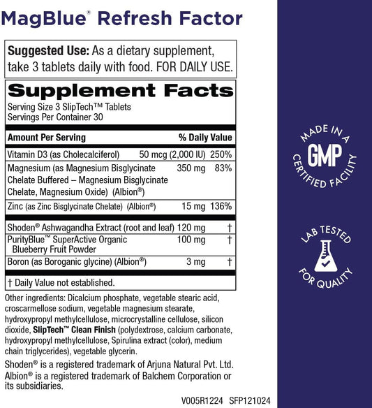 MagBlue Refresh Factor: Premium Magnesium Bisglycinate with Ashwagandha, Vitamin D3, Zinc, and Boron Tablets - 90 Count