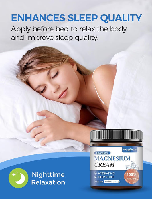 Natural Magnesium Body Butter Cream for Sleep and Muscle Relaxation - Unscented Topical Lotion for Leg Cramps and Pain Relief - Hydrating Formula Safe for Children