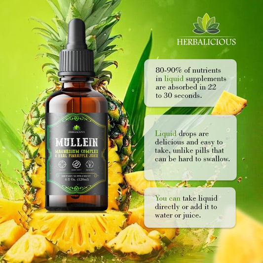 Organic Mullein Leaf Extract Drops for Lung Cleanse - Vegan & Non-GMO Liquid Supplement with Verbascum Thapsus