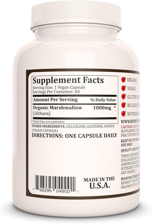 Marshmallow Root Capsules 1,000mg - 60 Vegan Capsules Herbal Dietary Supplement - Non-GMO, Gluten Free, Dairy Free - Two Month Supply of Remedy's Nutrition