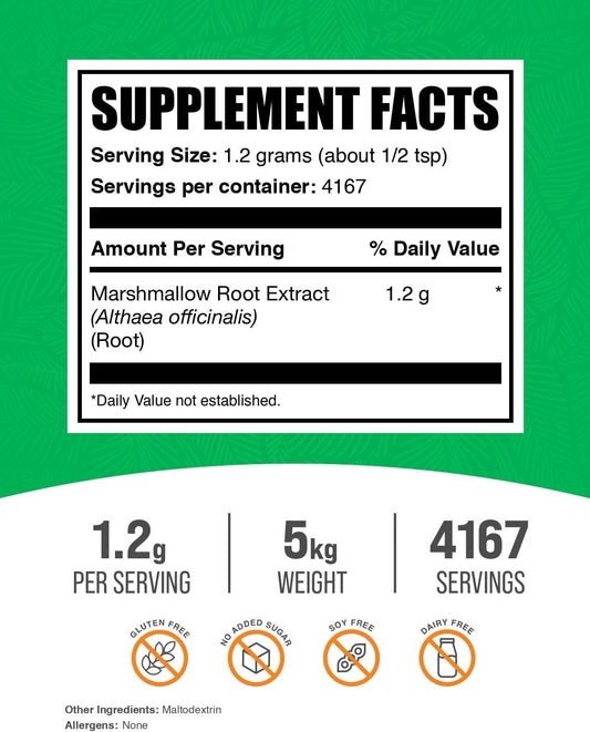 Marshmallow Root Extract Powder - 5kg (11 lbs) Bulk Pack, Herbal Supplement, Gluten-Free, 1200mg per Serving - Pack of 5