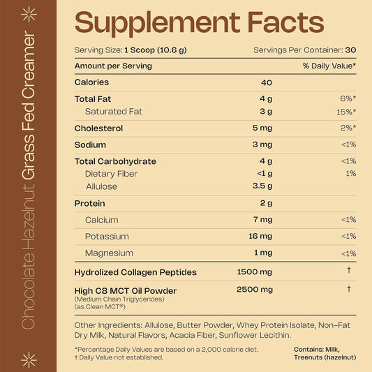 Energizing Chocolate Hazelnut Keto Coffee Creamer with MCT Oil & Collagen Peptides - 22 ozVendor:LevelUpRegular price $172.41 AUDRegular priceUnit price / per-