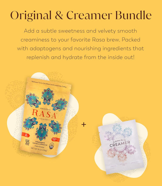 Rasa Koffee RASA Original Adaptogenic Coffee Alternative & Crème de la Creamer Bundle - Vegan, Keto, Whole 30 - Mushroom Wellness Tonic & Adaptogen Creamer with MCT Oil (30 Servings)