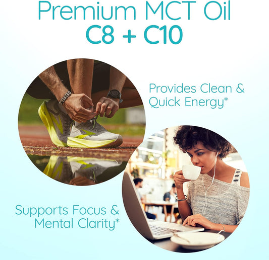 Premium Unflavored MCT Oil C8 & C10 from Non-GMO Coconuts - Ideal for Coffee - Quick Energy Boost - 32 fl oz