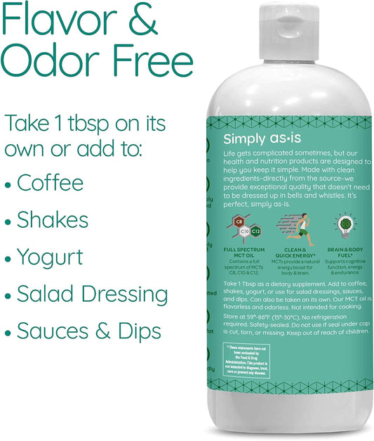 Pure Non-GMO Full Spectrum MCT Oil | Unflavored | Boost Morning Coffee | Clean Energy | 32 fl oz (63 Servings)