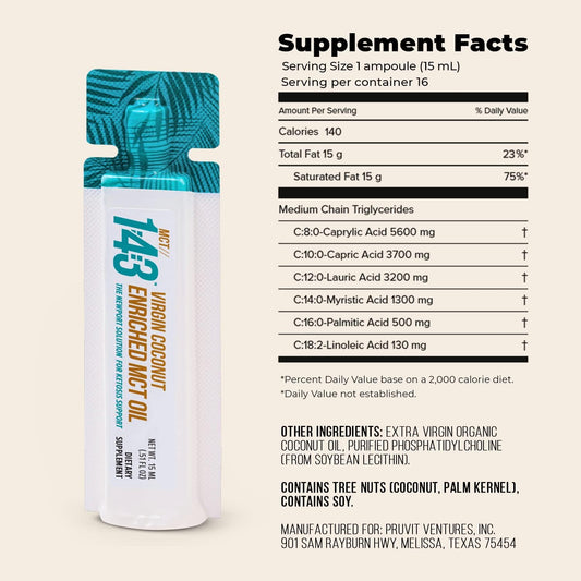 Organic Coconut MCT Oil 1:43 - Premium Fatty Acid Fuel for Overall Health - 8.12 FL OZ