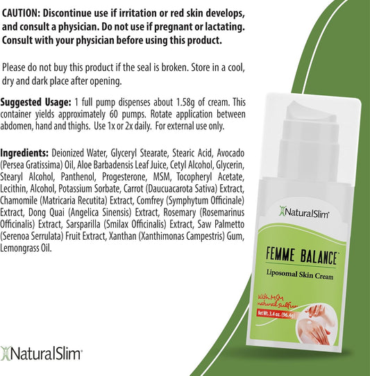 NaturalSlim Femme Balance Progesterone Cream for Women's Hormonal & Menopause Support - 3.4oz, 3-pack - All Skin Types
