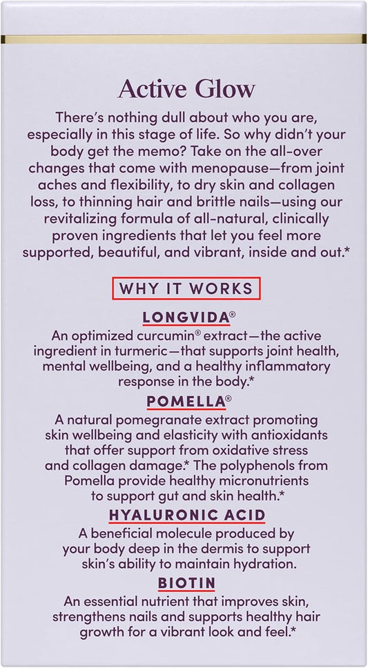 Womaness Active Glow Hair Skin Nails Vitamins with Biotin, Longvida Curcumin, & Hyaluronic Acid - Joint Health, Dry Skin, Thinning Hair Support (30 Caps)