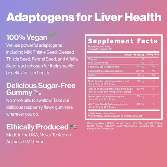 Organic Milk Thistle Gummies for Liver Detox & Repair - Antioxidant Support - 60 Vegan Ct