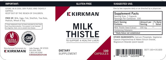 Hypoallergenic Kirkman Milk Thistle 100 mg - 100 Vegetarian Capsules