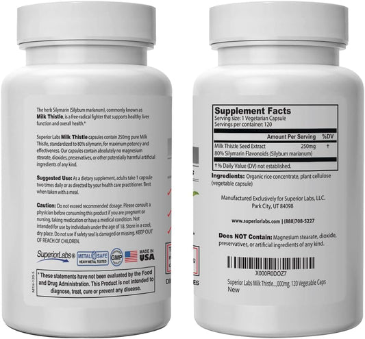 NonGMO Milk Thistle Extract - 80% Silymarin Flavonoids - Supports Liver and Kidney Health - 120 Capsules, 250mg