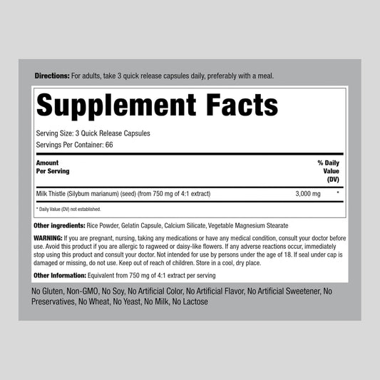 3000mg Milk Thistle Supplement Capsules - 200 Count, Concentrated Herbal Extract, Non-GMO & Gluten Free - Piping Rock