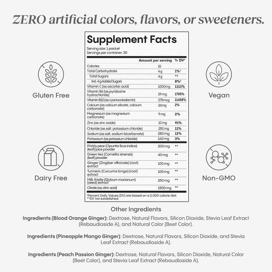 Hydralyte Liver Support + Electrolyte Mix with Milk Thistle, Turmeric, Ginger, Prickly Pear, Green Tea Extract - 30 Packets for Rapid Rehydration