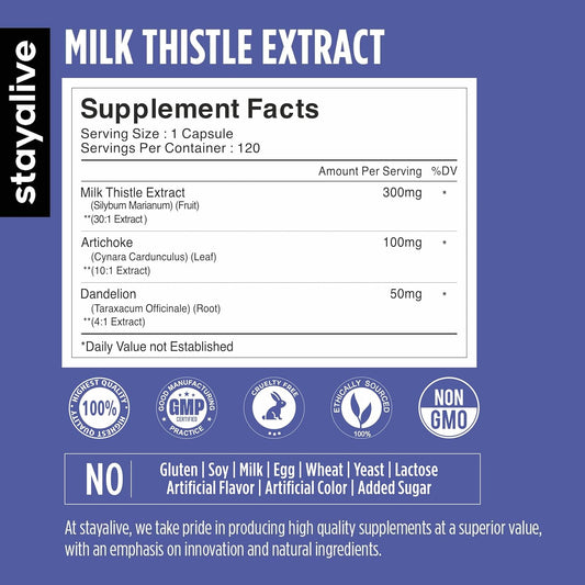 Liver Detox Supplement with Milk Thistle, Dandelion Root, and Artichoke - 450mg, 80% Silymarin Complex - 120 Pills, Non-GMO & Gluten-Free