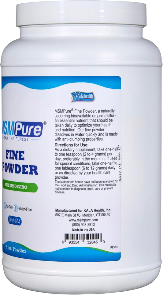 5 lb KALA HEALTH MSMPure Organic Sulfur Powder Crystals for Joint Flexibility, Skin, Hair, and Nails - USA Made