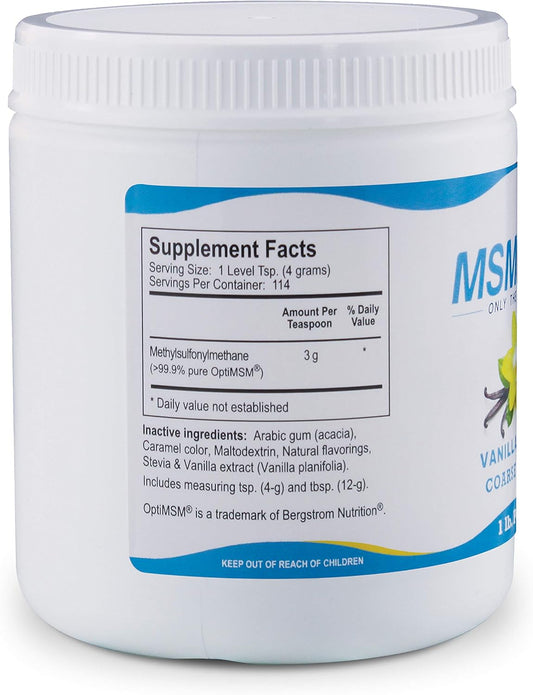 Organic Vanilla Flavored Coarse MSM Powder Flakes - 1 lb, USA Made, for Joint Flexibility, Skin, Hair, Nails