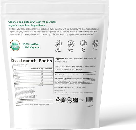 Organic Powdered Vegetable Superfood Supplement - Vegan Mint Apple Greens - 30 Packets