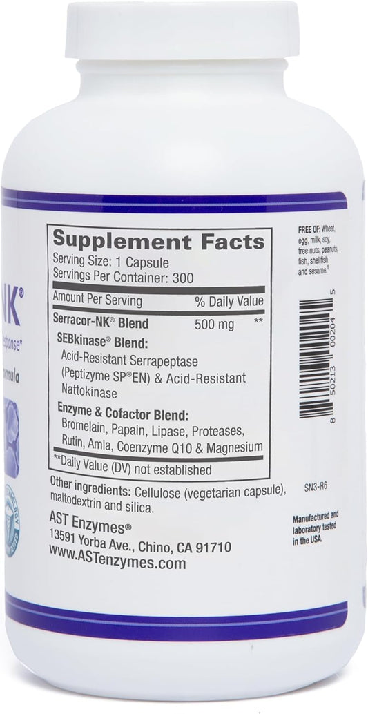 300 Vegetarian Capsules of AST Enzymes Serracor-NK for Circulatory and Respiratory Support - Natural Enzymes Formula with Serrapeptase & Nattokinase