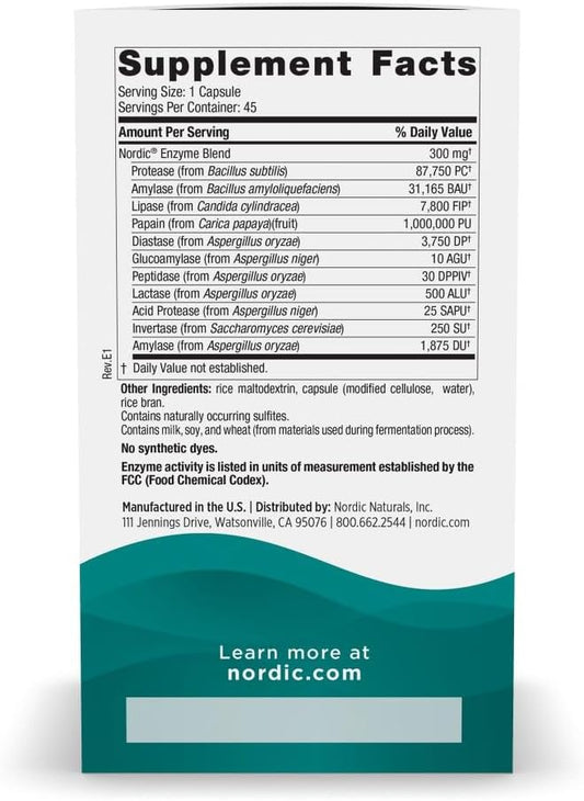 Nordic Naturals Digestive Enzymes Capsules - 45 Servings - Non-GMO, Supports Digestive Function and Nutrient Absorption