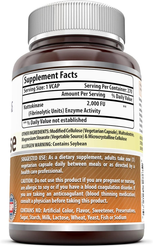 High Quality Nattokinase Dietary Supplement - 270 Capsules, 100mg, 2000 FU Enzyme Activity - Non-GMO, Gluten Free - Made in USA by Amazing Nutrition