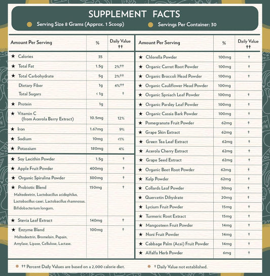 Organic Coffee Flavored Greens Powder with Probiotics & Digestive Enzymes for Immune Support | Non-GMO Vegan Blend | 90 Servings