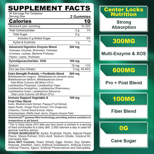 EnvyCure Digestive Enzymes Gummies - 1000mg Chewables with Probiotics, Prebiotics, Fiber, and Vitamins ADK. Calcium, Magnesium, and Zinc Supplement Included.