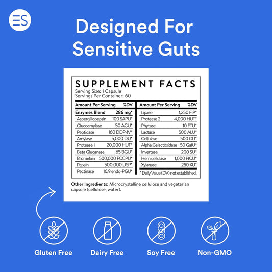 Digestive Enzymes for Dairy & Lactose Tolerance - 120 Capsules - All-Natural Formula for Gentle Digestion, No Additives