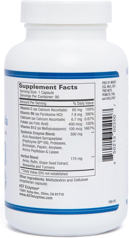 AST Enzymes Ultimate Metabolic Formula with Acid-Resistant Serrapeptase for Joint Support & Injury Recovery - 90 Capsules
