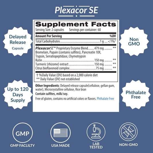 Plexacor Multi-Enzymes Fibrin Defense Joint Supplement 6-in-1 SuperEnzyme Blend with Rutin Serrapeptase Superior Turmeric Healthy Inflammation Response Natural 120 Count