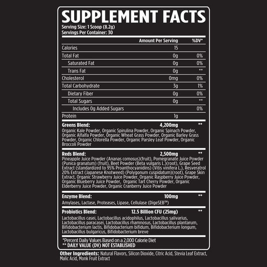 VMI Sports Greens + Reds Superfood Blend with Enzymes & Probiotics for Immunity & Gut Health - 30 Servings (Strawberry Kiwi)