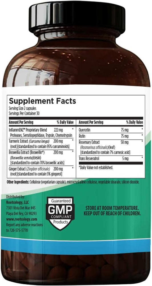 Rootcology Systemic Enzymes with Turmeric and Ginger Extract - Natural Support for Tissue Repair - 60 Capsules by Dr. Izabella Wentz