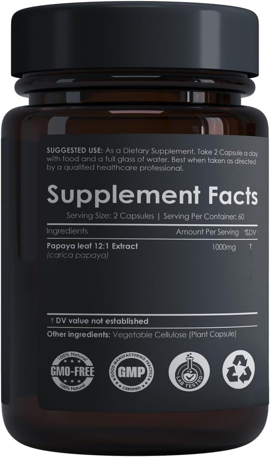 120 Ayorish Papaya Leaf Extract Capsules - 60 Day Supply | Non GMO & Gluten Free - 12:1 Concentration