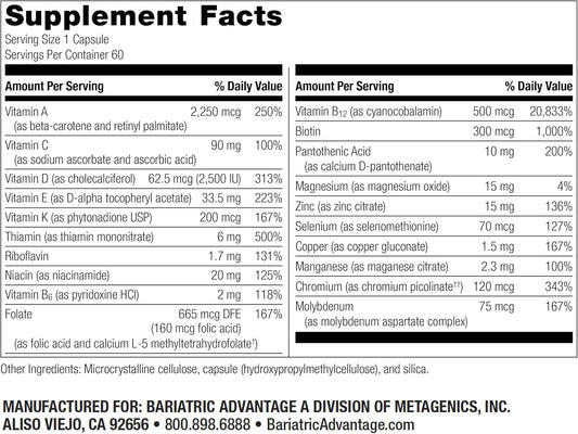 Bariatric Advantage High ADEK Multi - Complete Multivitamin for Bariatric Surgery - 60 Capsules