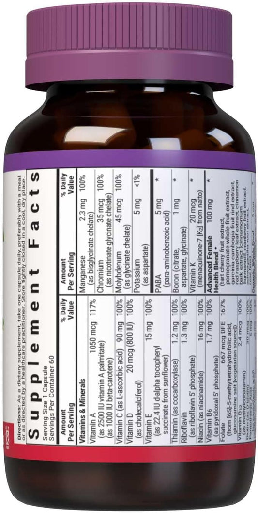 BlueBonnet Nutrition Ladies One Whole Food Multiple Capsules - Organic, Non-GMO, Gluten Free, Soy Free, Kosher - Energy & Vitality Boost - 60 Capsules, 2 Month Supply
