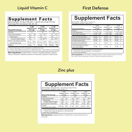 3-Pack ChildLife Essentials Immune Support Bundle - Liquid Vitamin C, First Defense, Zinc - Boosts Immune System for Children