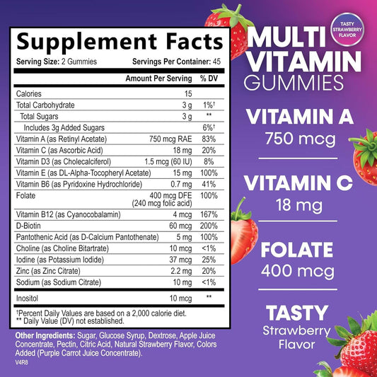 Daily Immune Support Multivitamin Gummies for Adults - 90 Berry Flavored Gummies with 13 Essential Vitamins and Minerals for Men & Women by Nature's Nutrition