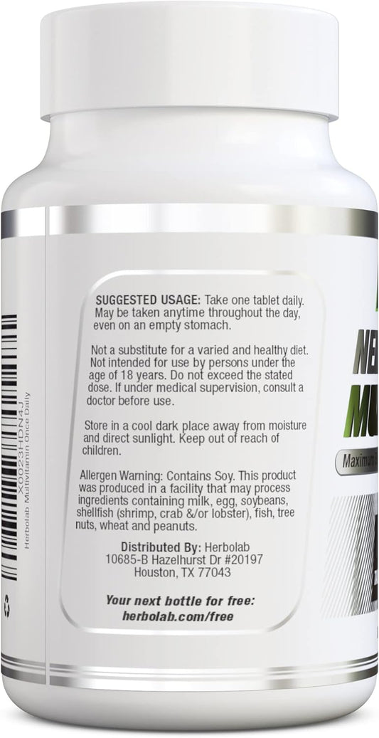High Potency Once Daily Multivitamin with Essential Vitamins and Minerals, 60 Tablets for 2 Months Supply by herbolab