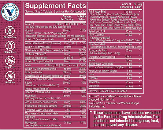 Vitamin Shoppe Ultimate Woman Multivitamin: High Potency Energy & Antioxidant Blend with Green Tea Extract - Daily Mineral Supplement for Women's Health (180 Tablets)