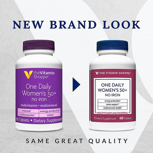 Vitamin Shoppe Women's 50+ Multivitamin - No Iron, Multi-Mineral Supplement - Supports Energy, Cardiovascular, Vision, Immune Health - 60 Tablets