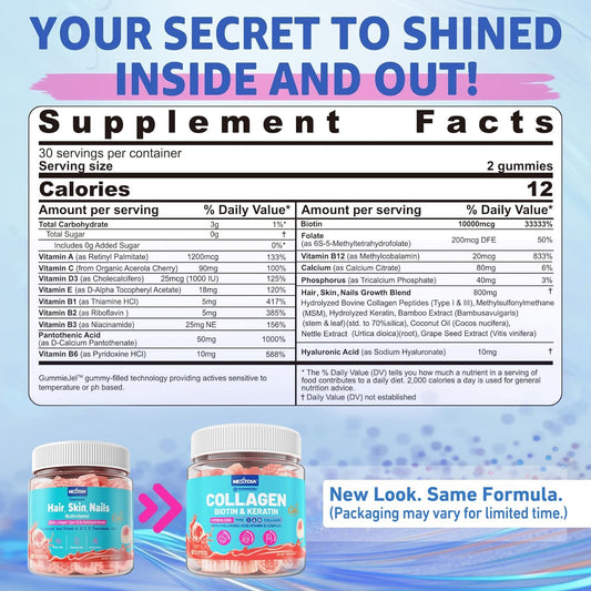 Women's Sugar-Free Biotin Gummies with Multi Collagen for Hair Skin Nails - 10000mcg Biotin, Hydrolyzed Collagen, Keratin, Hyaluronic Acid - Hair Growth Vitamins