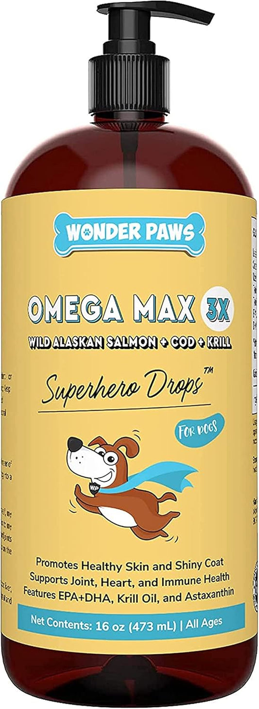 Omega Max Fish Oil Plus Daily Multivitamin Chews for Dogs - Joint Health, Skin Moisture, Immune System Support - 16oz Omega Max Fish Oil with 60 Multivitamin Chews