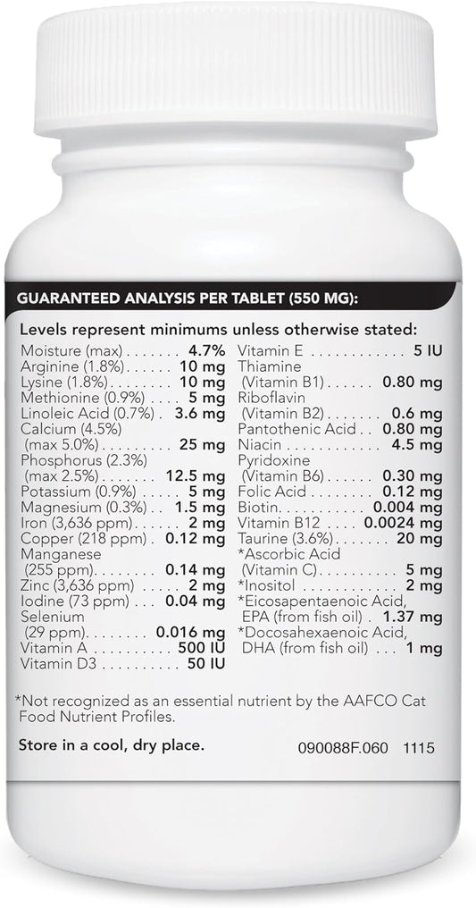 Senior Cat Multivitamin Supplement - VetriScience Nu Cat Tablets with 25+ Key Vitamins, Lysine, and Taurine