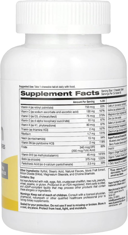 High-Potency SuperNutrition Multi-Vitamin Chewable Tablets for Men 50+ - Wild Berry Flavor - 90 Count, 3 Month Supply