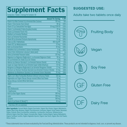 Men's Multivitamin 50+ for Immune, Energy, Longevity & Memory Support - 120 Tablets - Gluten Free, Soy Free, Vegan - 60 Servings