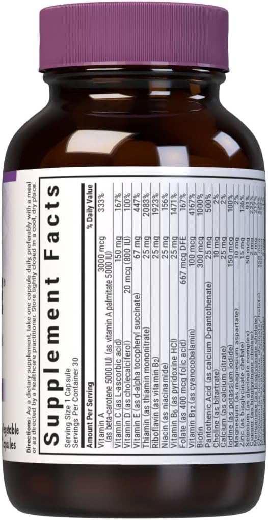 Bluebonnet Nutrition Multi ONE (Iron-Free) Daily Nutritional Support Capsules - Kosher, Gluten-Free, Dairy-Free, Vegetarian - 30 Servings