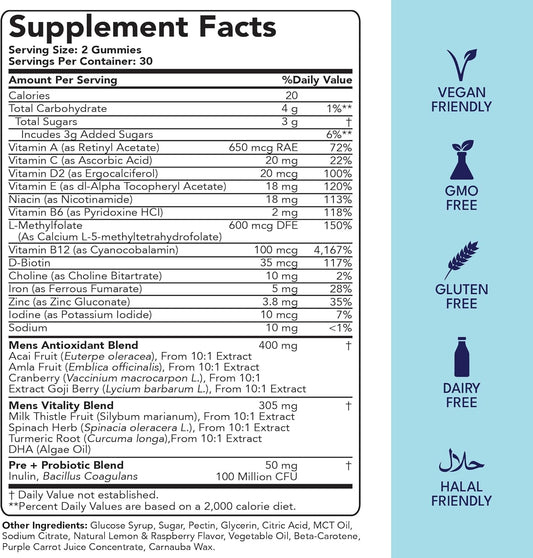 Men's Multivitamin Gummies with Probiotics and Prebiotics by Sakoon Nutrition